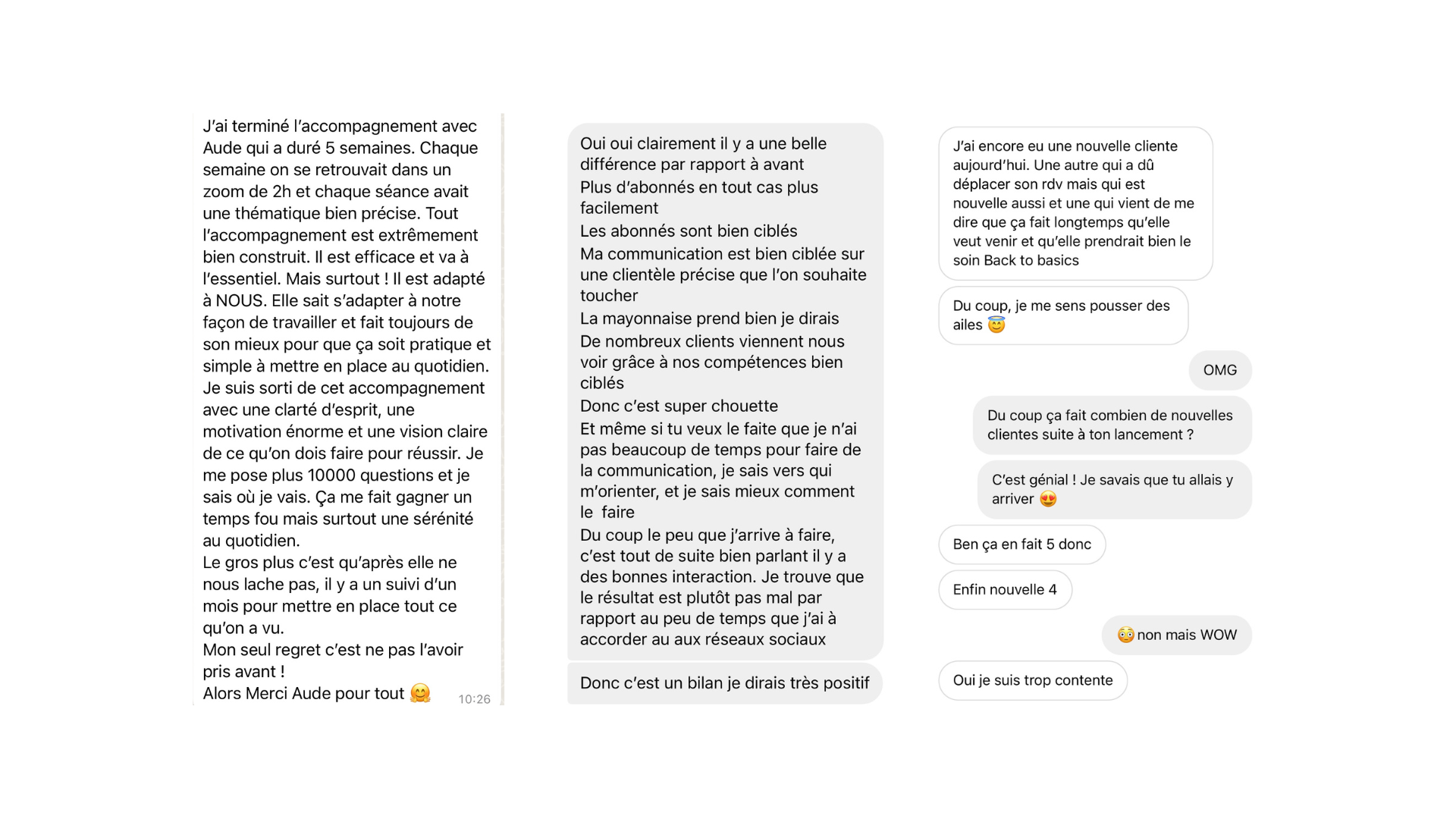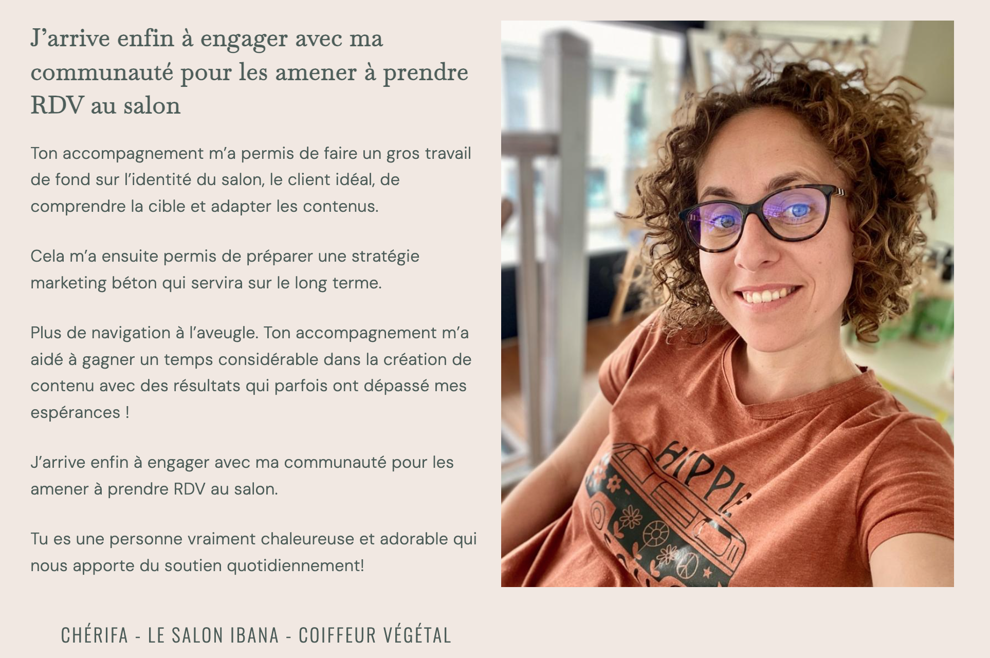 Tu vois des résultats tangibles avec une augmentation des ventes et une meilleure notoriété pour ta marque, tout en étant capable de te concentrer sur ce que tu aimes vraiment : développer tes produits et servir tes clientes.