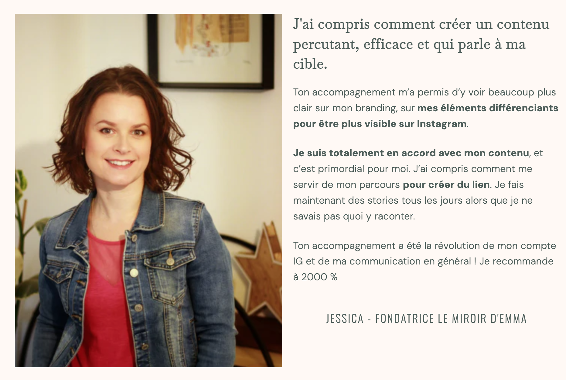 Nous allons également développer ton storytelling de marque de manière à ce que tes valeurs et ta vision soient clairement perçues par tes clients potentiels pour te différencier.